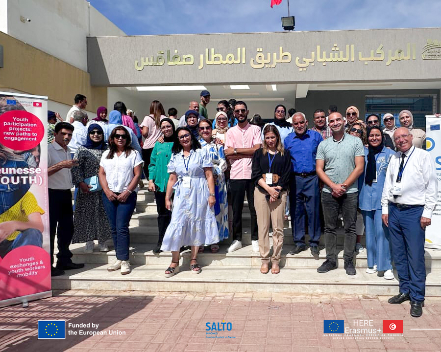 Le Bureau national Erasmus+ Tunisie, en collaboration avec le SALTO EuroMed point de contact en Tunisie et la Délégation régionale de la Jeunesse et du Sport à Sfax, a organisé le 27 septembre 2025 au Complexe Des Jeunes route aéroport Sfax une session d’information Erasmus+ dédiée à la jeunesse.