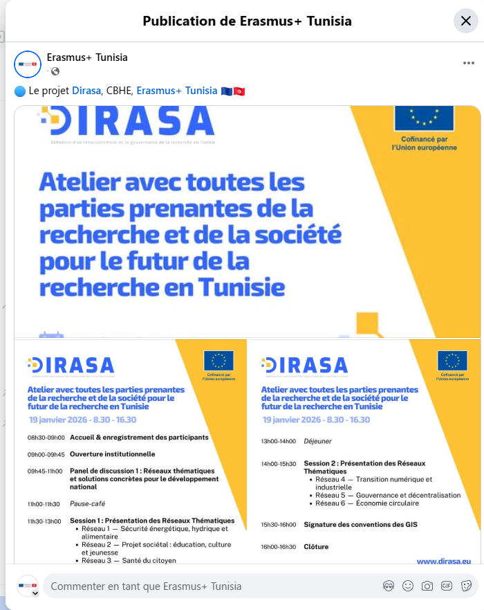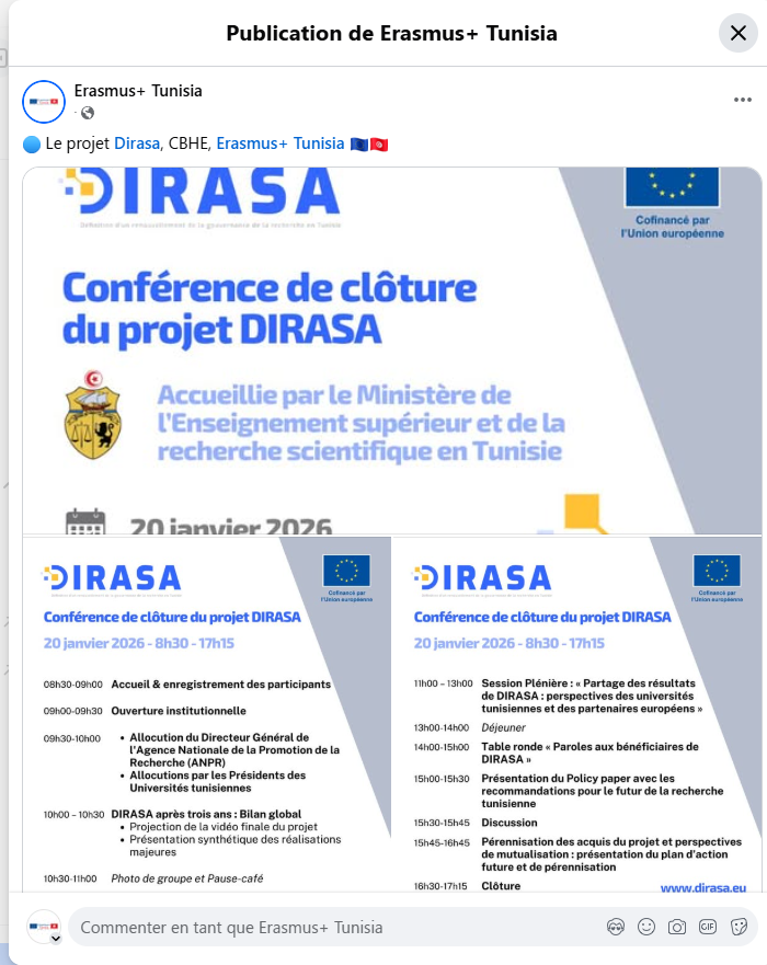 Université de la Manouba a organisé une journée de dissémination dans le cadre des activités locales du projet DIRASA.